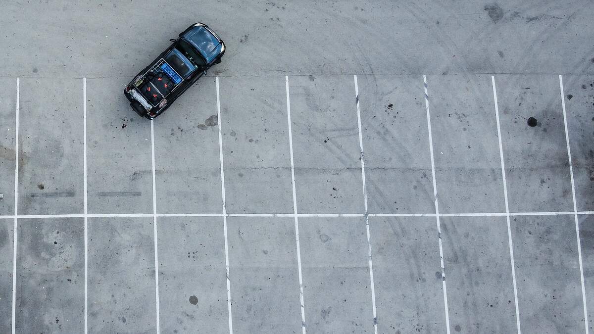 A dude somehow finds himself in a predicament when his Chevy Silverado gets stuck up a pole inside a parking lot.