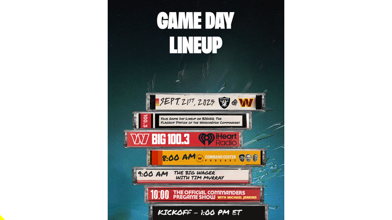 Listen to all Washington Commanders games on: BIG 100 | 100.3FM | WBIG.com | Any Smart Speaker | iHeart App IOS & Google Play