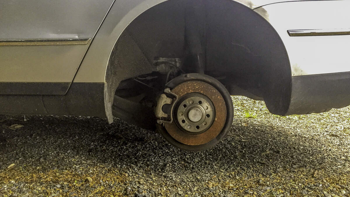 As soon as the video starts, the back wheel of the Chevy apparently just fell off the vehicle and begins tumbling down the road, veering into the oncoming lane.