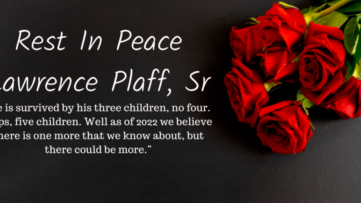 Lawrence Plaff, Sr. died on June 27th and his obituary lays out all his bad traits. It begins with âHe passed away on June 27, 2022, living a long life, much longer than he deserved. He is survived by his three children, no four. Oops, five children. Well as of 2022 we believe there is one more that we know about, but there could be more.â